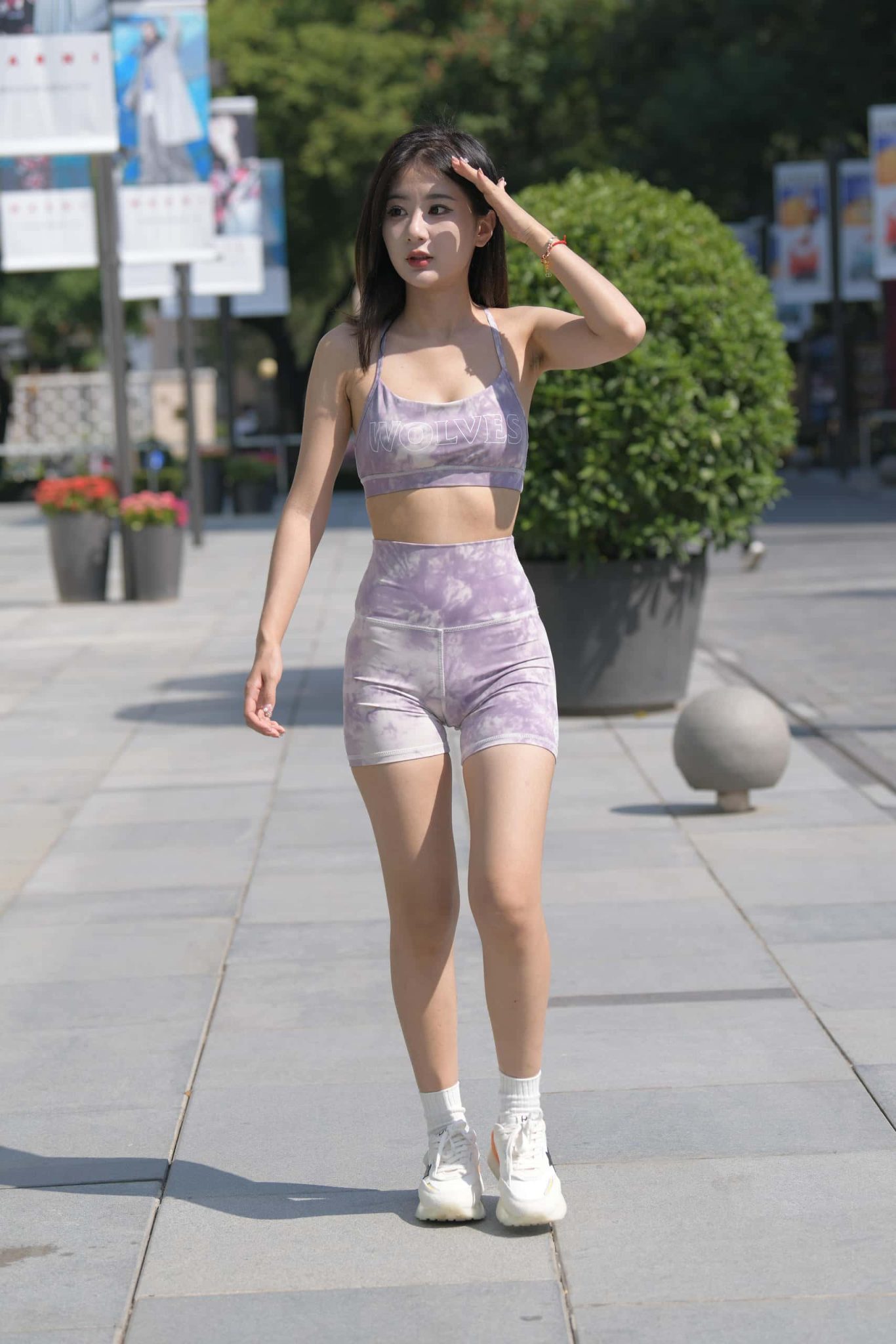 紫粉扎染紧身短裤美眉 【648P】J8295
